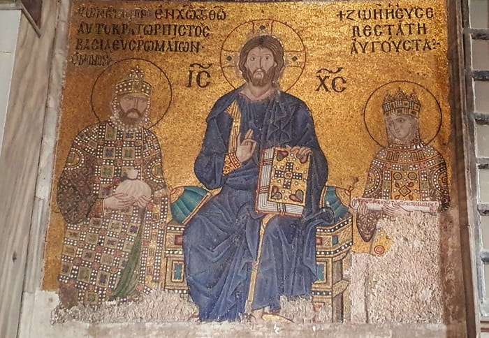 - Mosaic showing Jesus consecrating Emperor Constantine IX Monomachus and his wife Zoe